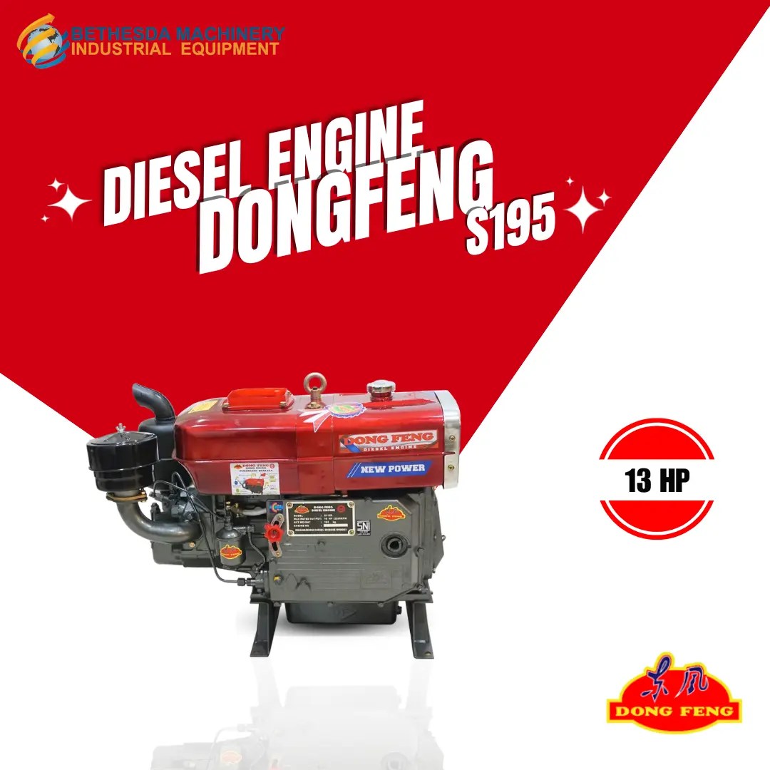 Mesin Penggerak 13 HP Diesel DongFeng S 195, Diesel Engine Serbaguna dengan bahan bakar solar. Engine Dongfeng terkenal dengan kualitas mesin yang bagus dan harga terjangkau, selain itu diesel ini memiliki banyak pilihan kapasitas mulai dari 7 Hp sampai 35 Hp, tersedia tipe yang berbeda beda sesuai dengan kebutuhan.