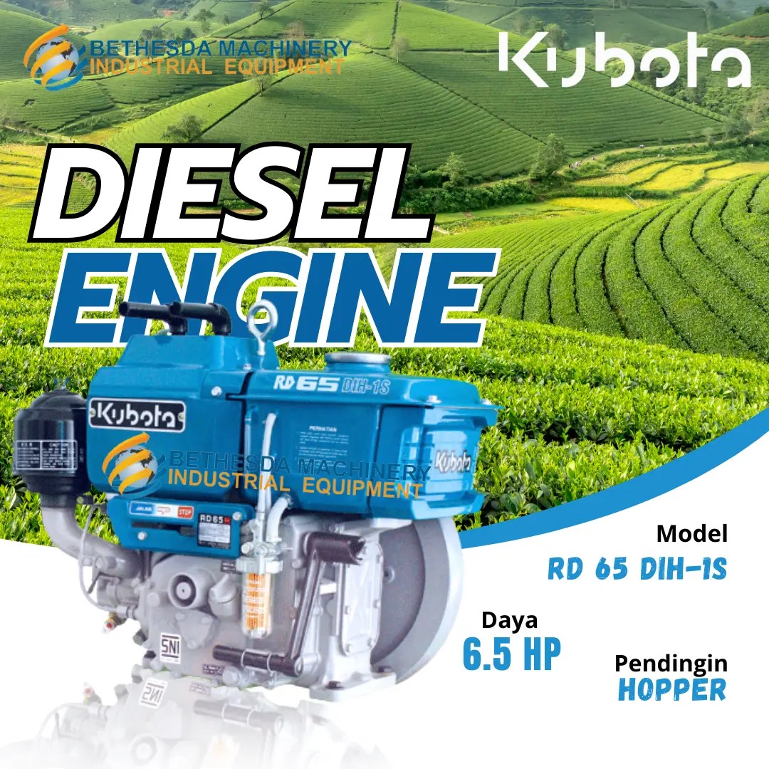 Mesin Penggerak 6.5 HP Diesel Kubota RD65DIH-1S, Diesel 6.5 Hp dengan daya rata rata 5.5 hp 2200 Rpm, tipe RD65DIH-1S menggunakan sistem penyalaan engkol dan pendingin hopper.